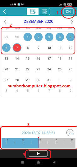 2. Pada tanda nomor 2 diminta untuk memilih tanggal rekaman CCTV yang mau di putar nah disini ada tanggal yang mempunyai tanda lingkaran warna biru artinya hanya ditanggal tersebut.